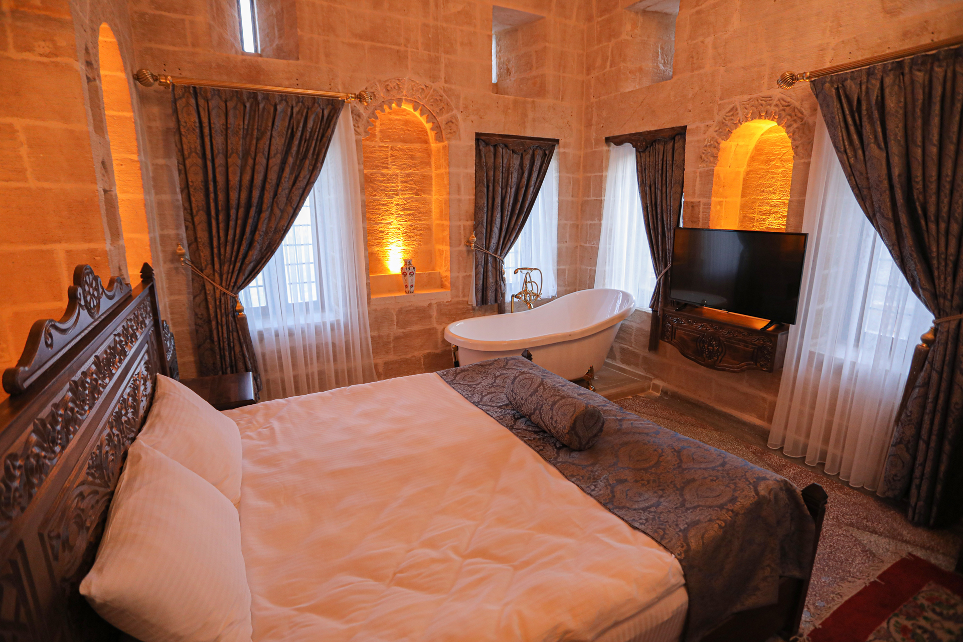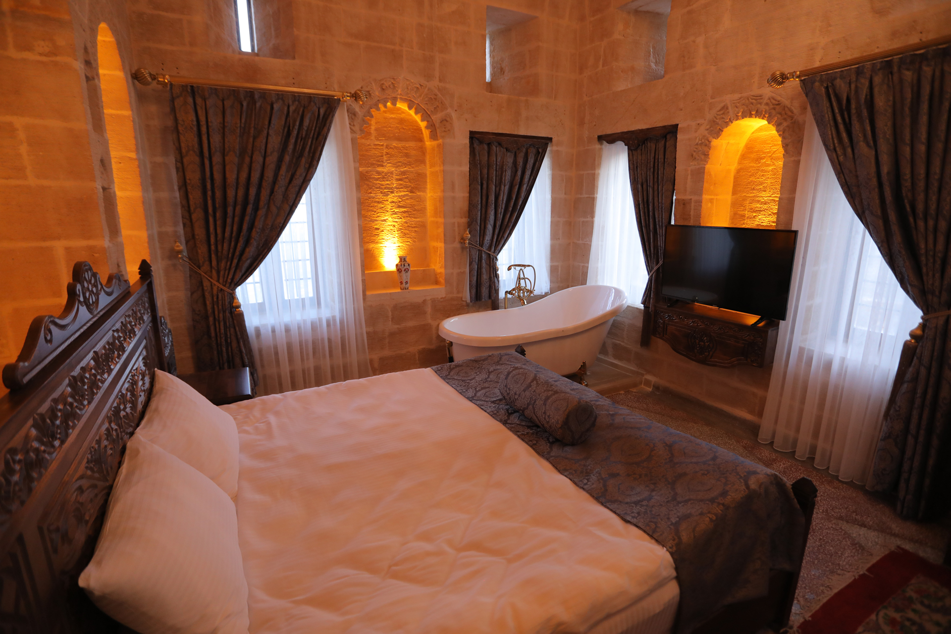 Kral odası; 1 adet çift kişilik yataktan oluşmaktadır. Oda içerisinde jakuzi bulunup terasa doğru açılan bir odadır. Konağın 2.katında bulunup mezopotamya manzarasını gören toplamda 6 penceresi vardır. Oda da kalabilecek yetişkin sayısı 2’dir ve ekstradan 2 tekli yatak konulabilir. Odada ki hizmetler; odaya özel Wİ-Fİ , dijital platformlar, jakuzi, banyo, duşakabin, günlük temizlik, ücretsiz vale hizmeti.
